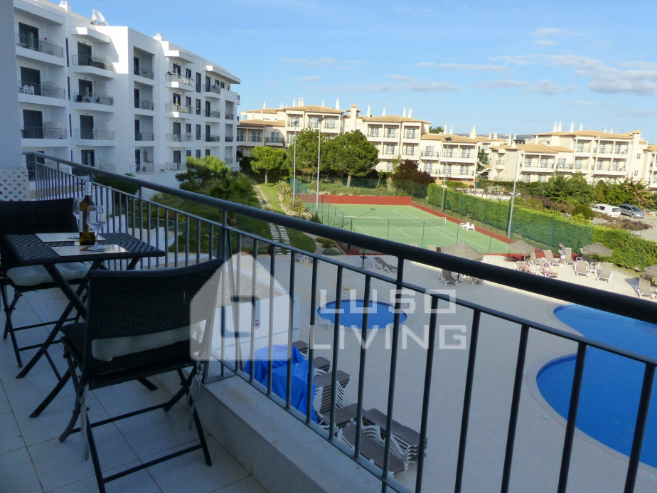 The apartment is located in the centre of Olhos d'Agua in a quiet location but just around the corner from all amenities. It is part of a new complex with a communal pool , separate childrens pool and a flood lit tennis court with lift access from the underground parking. should you hire a car.