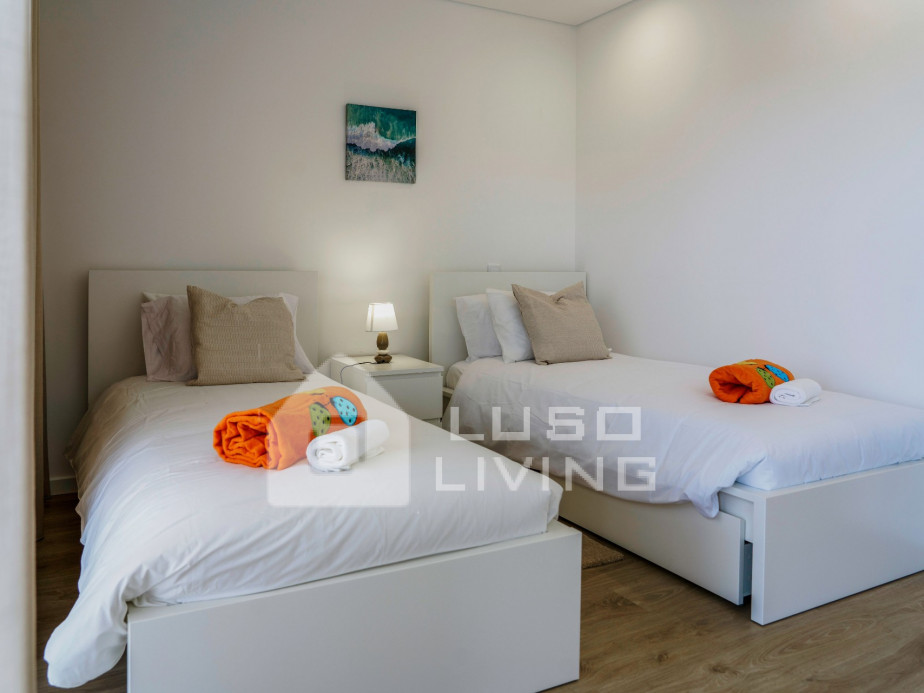 Uma ótima escolha para uma família ou amigos até 5 pessoas - composto de um quarto duplo en-suite, um quarto com duas camas individuais e um sofá-cama, na sala de estar. O apartamento dispõe de ar condicionado em todas as divisões, para o seu conforto. Tem ainda uma televisão e acesso por cabo a um leque diversificado de canais portugueses e estrangeirose e dispõe de Wi-Fi.