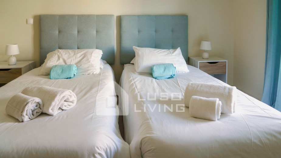 O condomínio dispõe de uma piscina para adultos e outra para crianças assim como um espaço de lazer com um escorrega para os mais pequenos.