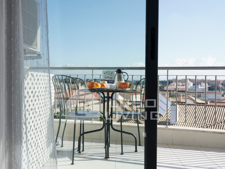 Apartamento moderno completamente renovado, localizado no 3º andar (com elevador), no Condomínio Privado Vista das Ondas, a uma curta distância a pé de restaurantes e da praia de Olhos de Água. Acomoda até 3 pessoas e é composto por um quarto, cozinha totalmente equipada, sala de estar e uma casa de banho. Dispõe ainda de um sofá cama que pode acomodar 1 pessoa confortavelmente.