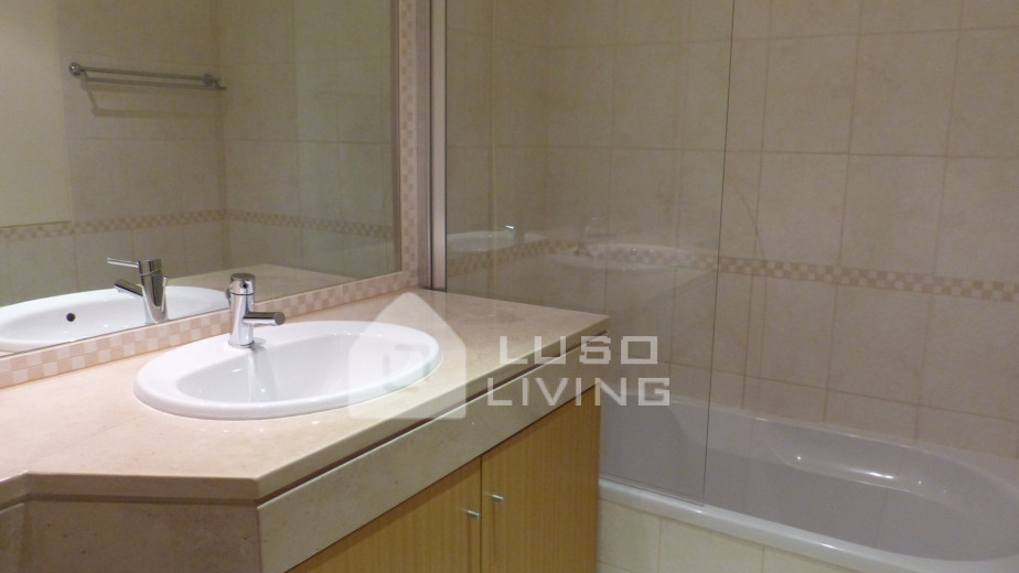 O quarto principal tem uma cama de casal e casa de banho privativa com banheira, e o segundo quarto tem duas camas individuais, existindo ainda um sofá cama na sala.
